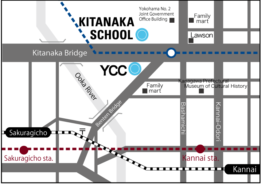 5 minute walk from Sakuragicho station on the Yokohama Municipal Subway line or JR line